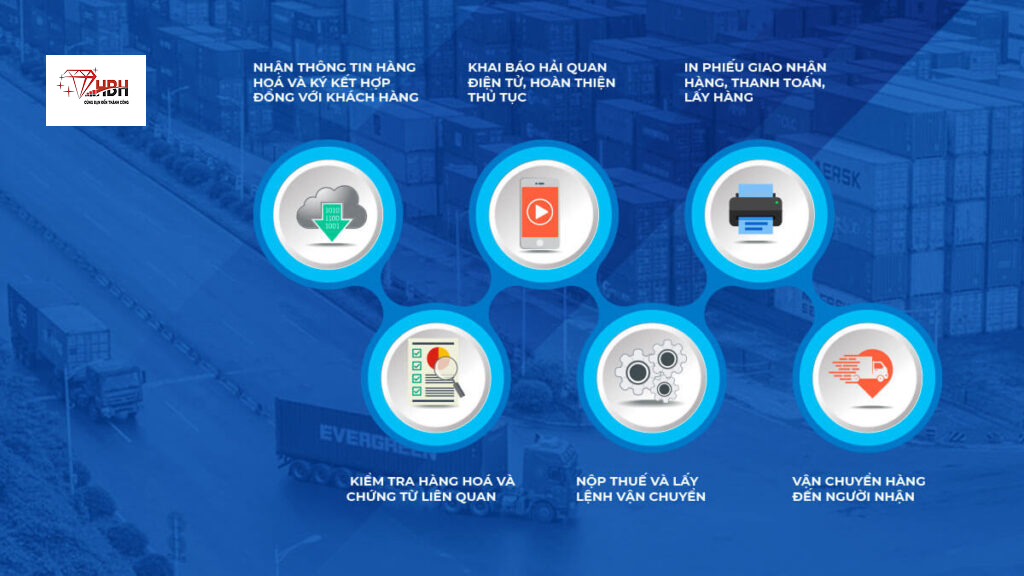 Sau khi tờ khai thông quan, bên vận chuyển hàng hoá sẽ in danh sách mã vạch container và mã vạch tờ khai, phiếu giao nhận. Những giấy tờ mã vạch sau in sẽ đưa đến nơi thanh lý Hải quan giám sát, để nhập mã thông quan cho phép vận chuyển hàng hóa đi. Sau khi thanh lý xong, đơn vị vận chuyển sẽ cầm phiếu giao nhận hàng hoá và giấy hạ rỗng để vào lấy hàng.